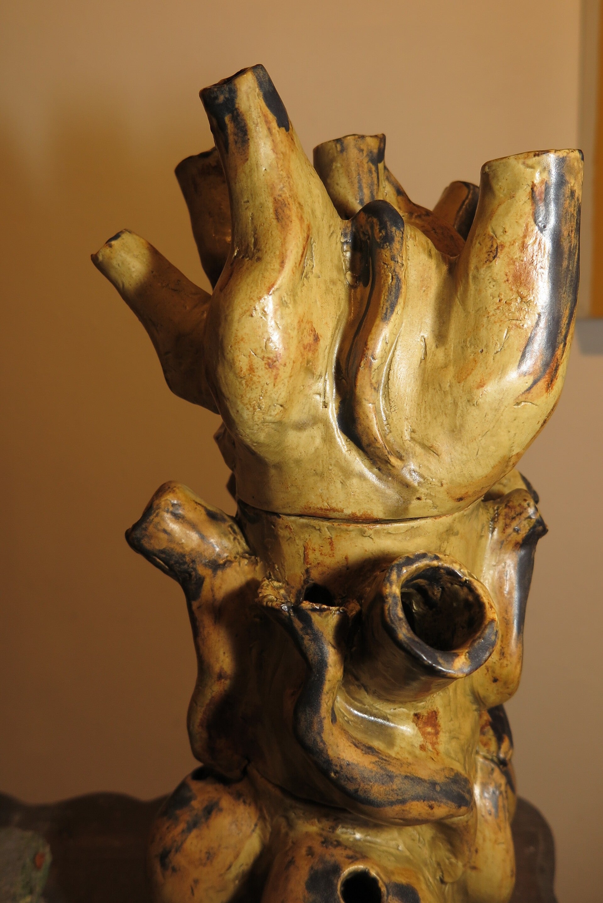 Kleiplaten in drukvorm en opgeboetseerd, ijzeroxyde in verschillende percentages door transparantglazuur, steengoed
