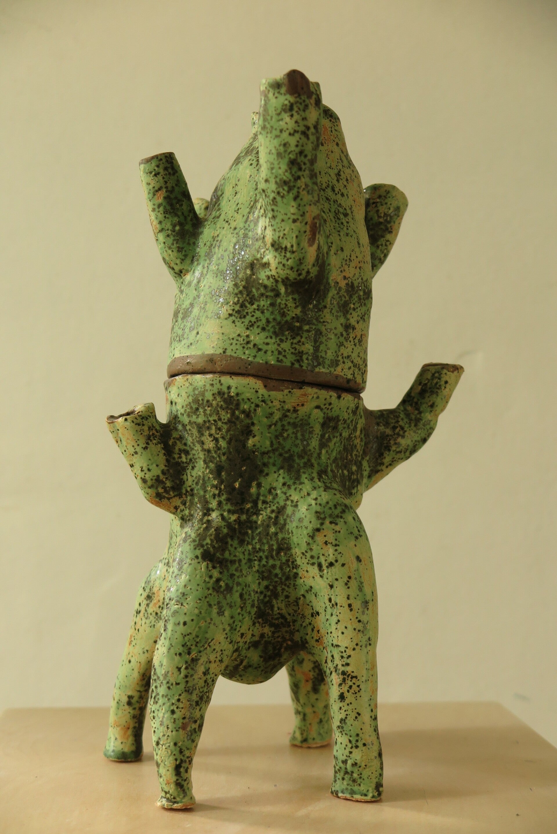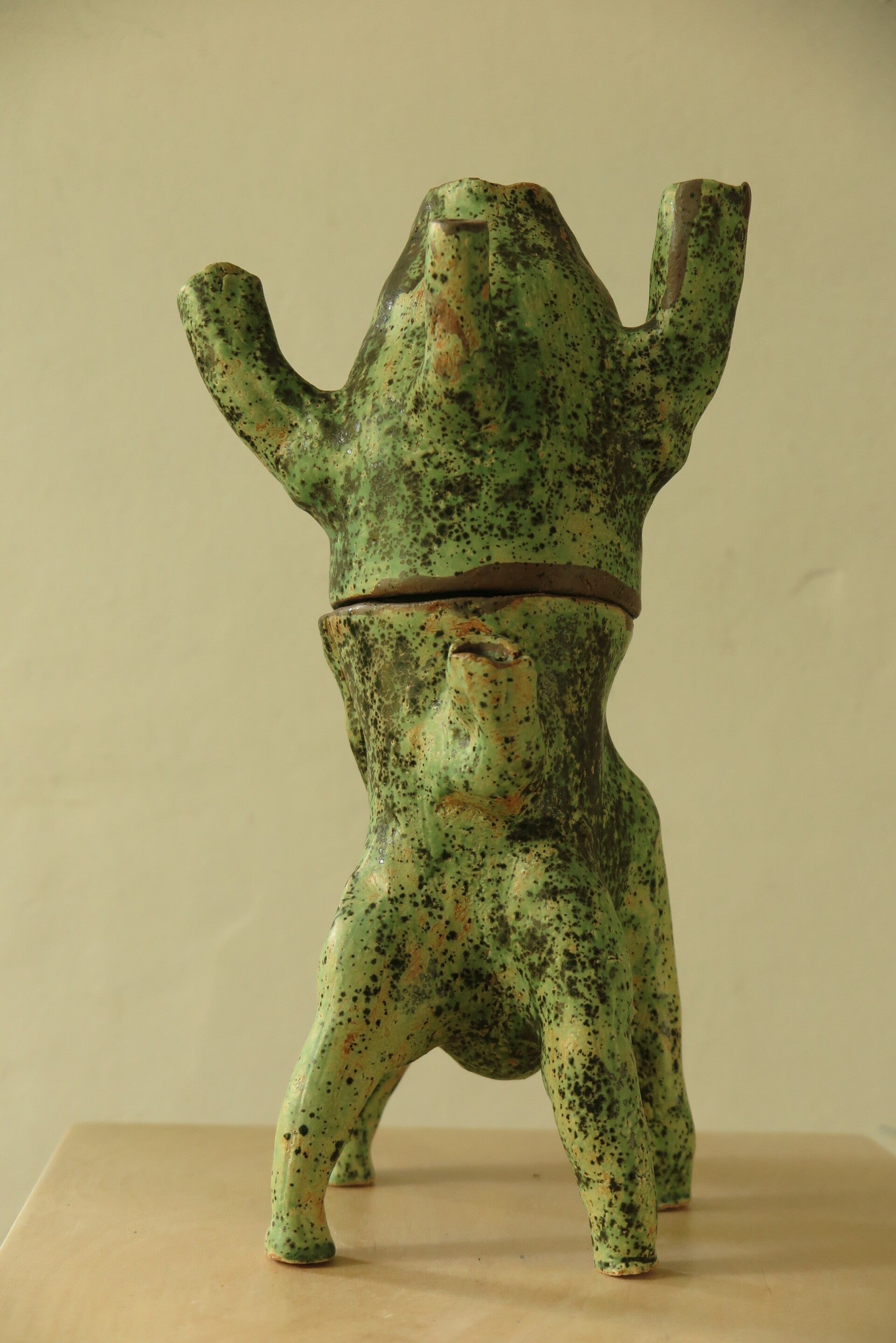 Kleiplaten in drukvorm en opgeboetseerd, Crocodile Botz glazuur, aardewerk
